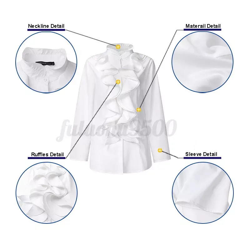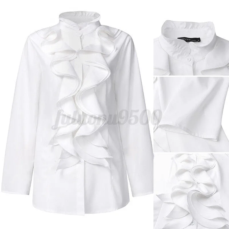 Women Buttons Down Ruffles Frill Blouse Ladies OL Office Shirt Tops Blouse